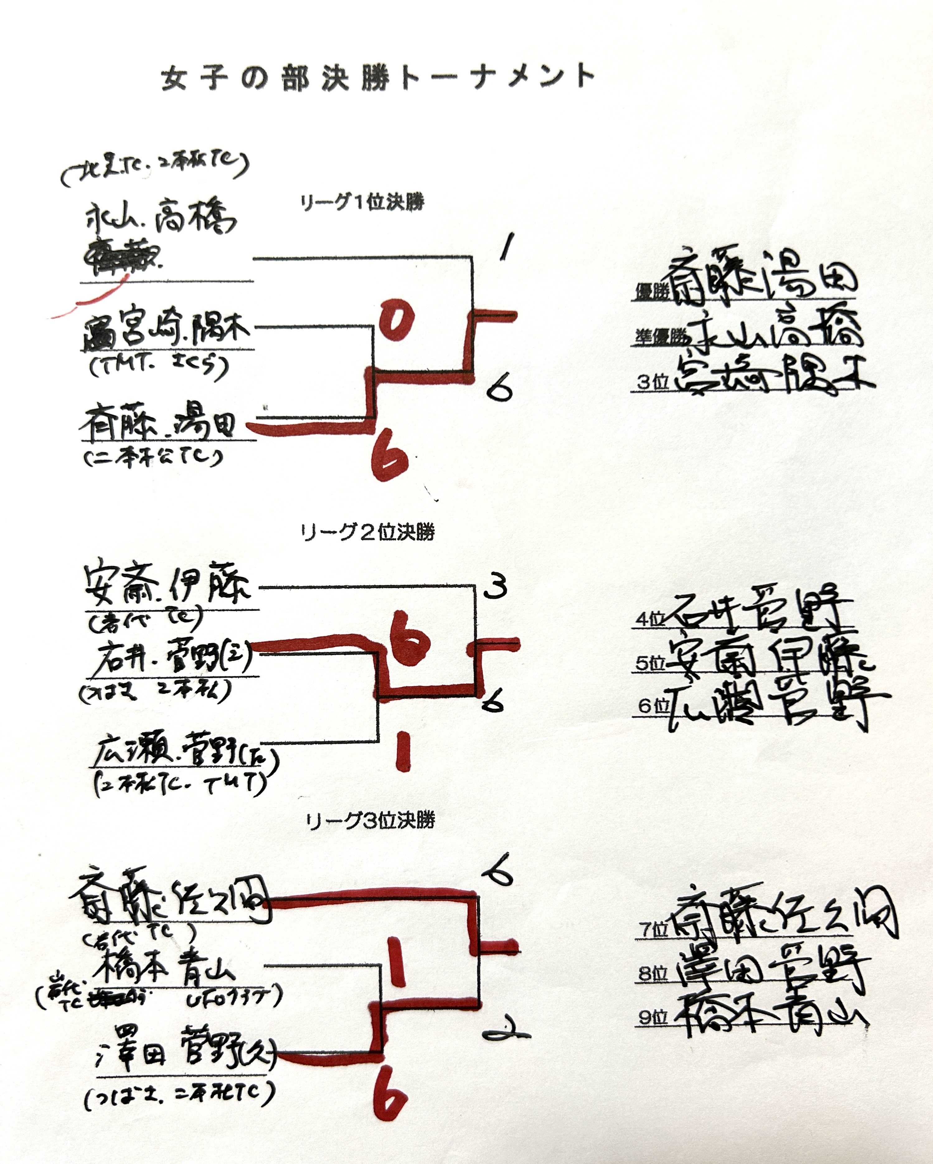 第40回 二本松市民テニス大会 (男子1部の結果はこちら) (男子2部の結果はこちら) (女子の結果はこちら) | 9月7日 | am 8:00~ | 城山庭球場 |